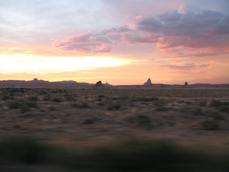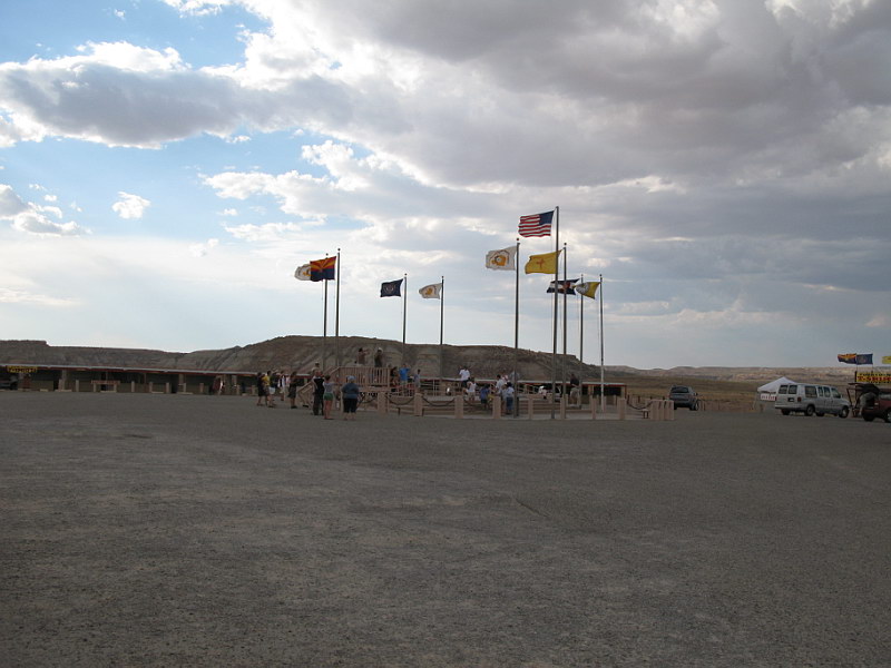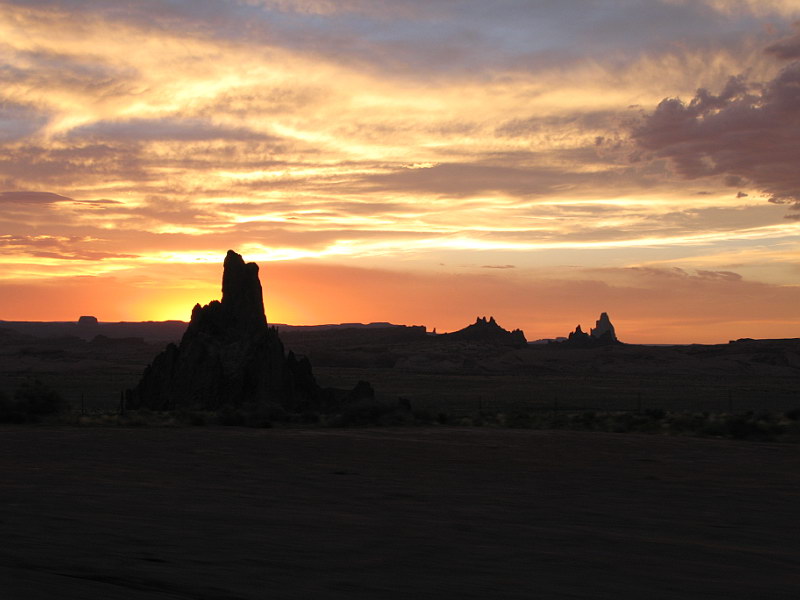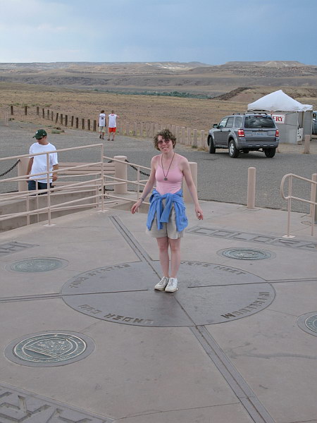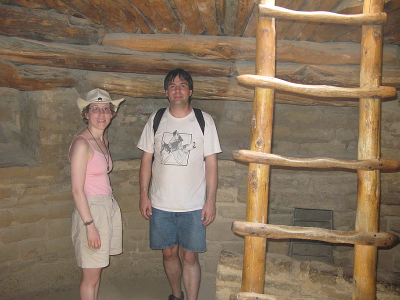 To be awoken at dawn to the sound of birds singing in the morning is both charming and annoying – birds wake up long before tired campers. Still, it helped us get an early start; we were up before 7:30. We took no time to break camp and start our day. The park offers a pancake breakfast for campers and we were happy to partake in a hot meal. (Knowing that we would never be too far from hot food, we didn’t bring any cooking apparatuses with us on this trip.) After that we made the hour or so drive down to our first tour of the day – an elaborate cliff dwelling called “Cliff Palace House”. You see, Mesa Verde was once the home of a group of Native Americans called the Anasazi (now called the “Ancestral Puebloans”). To maximize the fertile – if somewhat limited – farmland available to them – and perhaps to provide protection from marauders – they built their homes along the openings in the steep cliff faces in the area. These amazing stone structures have stood for over 700 years! The Parks Service offers guided tours of these marvels in ingenuity. Cliff Palace House is by far the largest and most elaborate of the known cliff dwellings – housing many families and sporting several subterranean structures called “kivas”: round pits, often twelve or so feet deep, that had been capped with logs, grasses and plaster. A hole in the top (over the fire pit) with a ladder going down provided the only entrance to these structures that are believed to have been used for religious purposes; however there’s evidence that they were used for mundane activities as well – like weaving and flour-grinding. Most kivas now are without their roofs and you can look in at the shallow fire pits and see the ingeniousness of the air vents that had been used to circulate air in the pits and keep the fire from flaring to high or snuffing out completely. At one of our stops, you could go done into an “intact” kiva. A neat idea. There was a roof and a ladder going down, but the fire pit and smaller pit called a “sipapu” had been filled in and the air vent was partially collapsed. Not a “genuine” kiva in my opinion. Our other tour was another structure called “Balcony House”. Where Cliff Palace was easy to get to with stairs and groomed paths – Balcony House is only accessed by a series of ladders. It was very fun :) It’s always intriguing trying to guess the intents of ancient peoples and how they lived and why they went away (they “disappeared” long before Europeans came to the area), but there’s just not enough evidence to answer a lot of those question. We had fun, none-the-less. We hiked some of the self-guided paths and checked out some very neat petroglyphs (cliff drawings). Finally it was time to leave and we drove our way back up through the park – taking some farewell pictures as we went. We stopped for a quick photo op at the Four Corners (where Colorado, New Mexico, Arizona and Utah meet), before continuing on our way. We happened to arrive in the middle of a dust storm. It made navigating outside of the car unpleasant, but it wasn’t too bad. Dinner that evening was at a small diner in an equally small town called Mexican Water. We had driven out of the storm by then, but it had caught back up with us as we ate, so we got to watch it from the safety of the diner. We got lucky in our timing and were able to drive through Monument Valley in North-Eastern Arizona as the sun was setting. The weather had cleared again and we got some breath-taking pictures!! We ended our day at a little place – appropriately called the Anasazi Inn. |