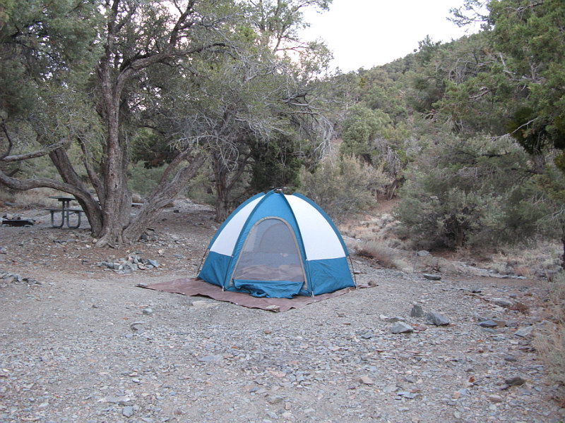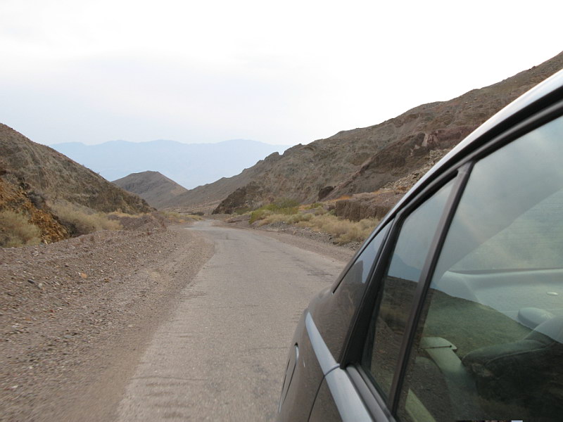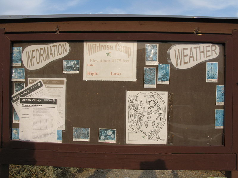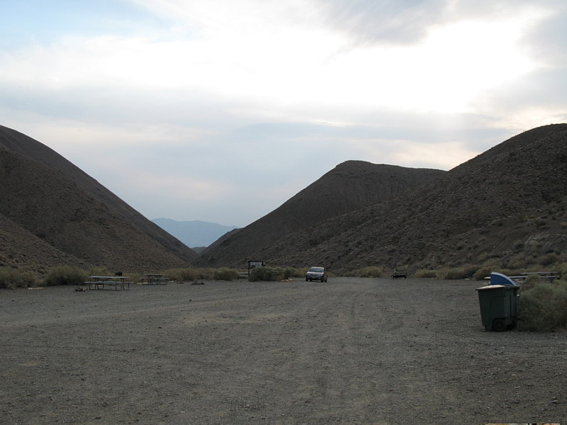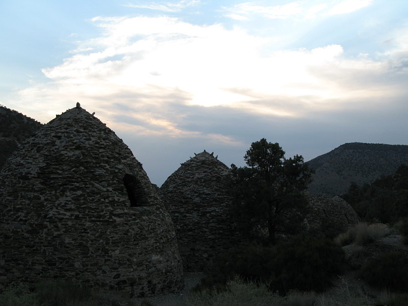 Rick was rather neutral on the whole “which way do we go?” question, so I made the decision: we went north. We chose to take Rt. 395 through the Mojave Desert – some of the most desolate country you will ever see. Ironically there were plenty of Joshua trees along the way, so we didn’t feel we were missing our botanically – I do still want to get to the Park at some point though – I do hear it’s fabulous! Just outside of Death Valley is a Naval Air base and the jets were out doing maneuveres as we were driving through the area. At one point we saw one draw level with the road ahead of us and I knew what he was doing. I grinned as the jet raced down the arrow straight road right towards us, buzzing the car as it flew over us. It was great! We arrived at Death Valley via the south-west entrance. Apparently not too many people come in this way as there’s no booth or anything to monitor one going into the park (we hadn’t seen any other cars for a couple hours) – just a sign telling you that you were now in Death Valley. We drove right in. The roads left much to be desired. In the north-east, an unmaintained road falls into horrible disrepair in just a couple of years due to heavy spring rains, snow and frost-heave. Out in the desert where the only eroding factor is the wind, it’s hard to imagine how long these roads have been there without any upkeep! Strangely, this part of Death Valley was not just a continuation of the desolate desert we had just left behind. We drove past breath-taking rock formations and even came upon a delightful picnic area that was draped in pink desert roses. It was quite a lovely sight! We stopped at an abandoned ranger station that had the various camp grounds posted – all the ones in our area were free to camp at; sounded good to us. We stopped at the first one. Its amenities included water spigots at every camp site. There was one other couple at this site and though we were fine with sharing, Rick and I were interested in moving on to one further down the road to see what there was to be seen. What came next amazed us. We were driving along (on increasingly horrible dirt roads), when suddenly we came upon these massive brick dome structures. Turns out these were charcoal kilns built about 100 years ago when there was active mining at Death Valley. Local wood was gathered (there are trees) and burned for about two weeks in these domes. The resulting charcoal was then carted by mule train to the mining areas and used to smelt ore. The kilns now stand empty. What really intrigued me though was that they were just about the same size and shape of Spider Kius homes. I was in seventh heaven, taking in a real life example of something I before could only just imagine. It was really fun! After I’d had my fill of the kilns and Rick had taken all the pictures he could, we continued on to our chosen campground and found it completely devoid of people. This was great! We had our pick of sites. As we were setting up the tent we decided to leave the rain hood off in the hopes of seeing stars through the ceiling mesh. We were in Death Valley afterall – not exactly known for its rainy weather. Of course, we were also camping at 8,000 to 9,000 feet above sea level. Wouldn’t you know – it was chilly and it did indeed rain all night long. Not a heavy rain, just a steady, insistent heavy drizzle that had everything soaked by with time we made a run for the car at 4:30 in the morning – where we spent the rest of the night. Oddly we weren’t put out by the moist conditions – it made for a fun adventure! |