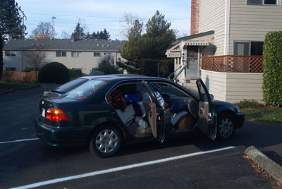 I left Portland, Oregon on the day after Thanksgiving (November 29th, 2002). I got up around 7:30 am and started to load up my car. My sister helped out some as well. I said goodbye to my Sister and Laura and hit the road around 10:00 am. |