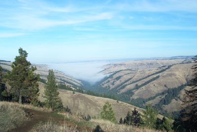 Deadman Pass with the valley covered in fog in Oregon