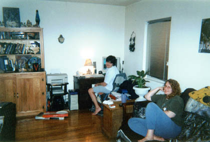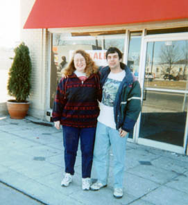 Darlene and I standing in front of their apartment building